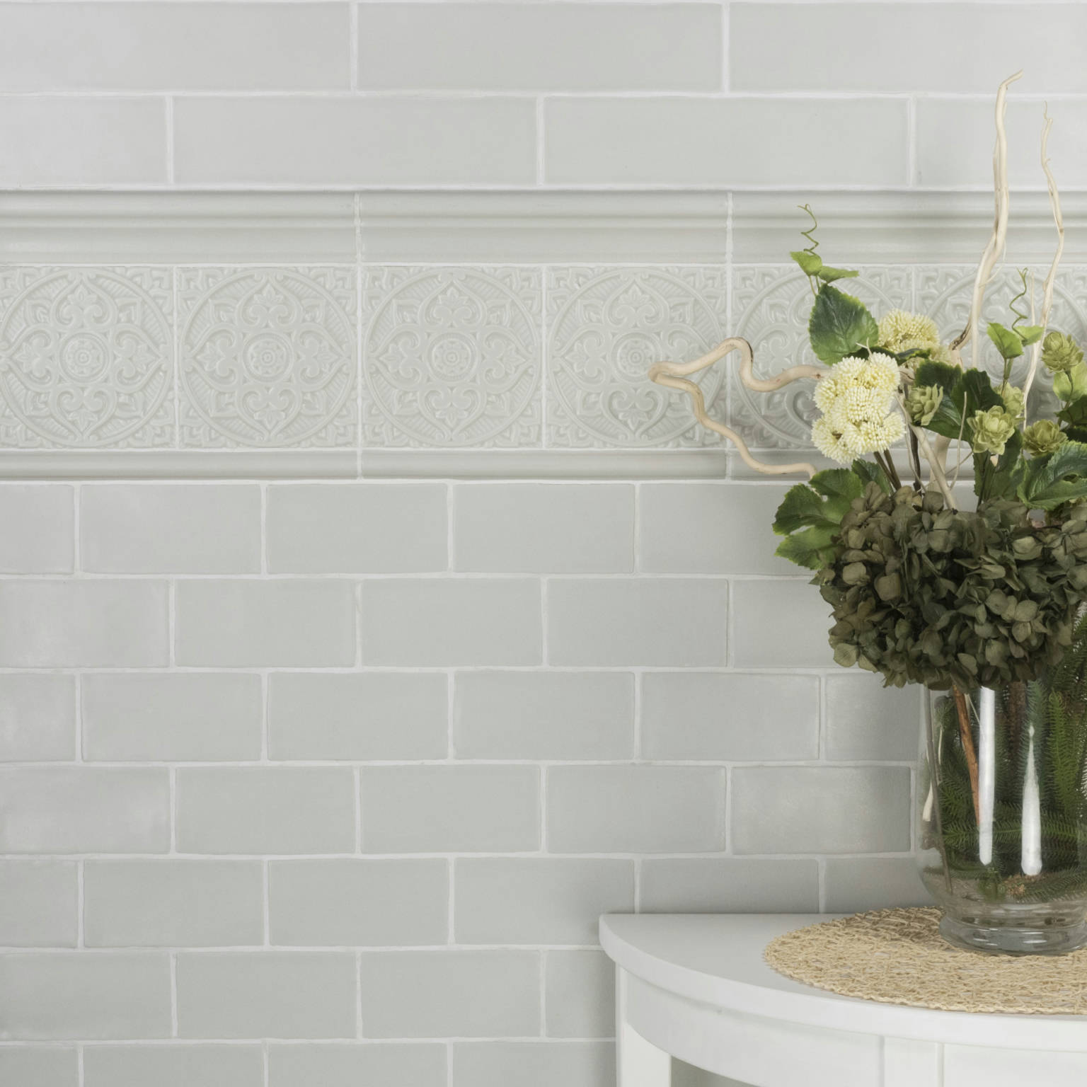 Earth-fliserne har en satin-overflade med en krakelerende effekt, hvilket er en super smuk detalje. En satin-overflade er en mellemting mellem en mat og en glossy overflade.