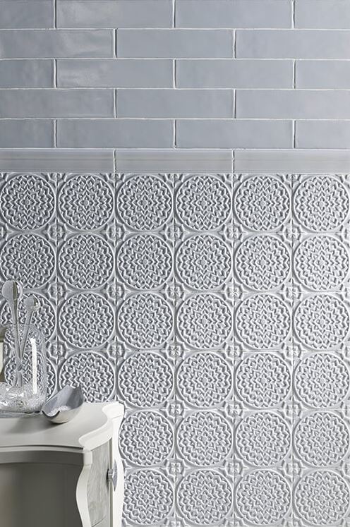 Earth-fliserne har en satin-overflade med en krakelerende effekt, hvilket er en super smuk detalje. En satin-overflade er en mellemting mellem en mat og en glossy overflade.