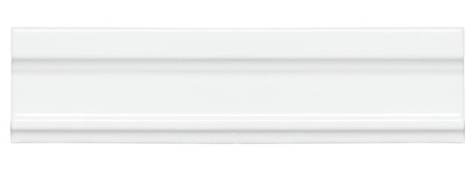 Cornisa Clasica Blanco Z er en dekorativ hvid flise med en blank overflade, som kan bruges som afslutningsliste. Flisen har to tilhørende hjørner, et vinklet hjørne og et udvendigt hjørne.