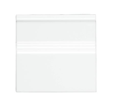 Rodapie Clasico Blanco Z er en dekorativ hvid sokkel-flise med en blank overflade. Flisen har et tilhørende udvendigt hjørne.