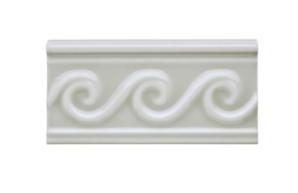Relieve Olas Silver Mist er en dekorativ lysegrå bort-flise med en blank overflade.