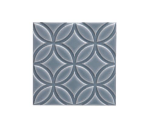 Liso Botanical Storm Blue er en dekorativ flise i en dæmpet gråblå nuance med en blank overflade og et floralt relief-mønster.