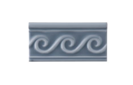 Relieve Olas Storm Blue er en dekorativ bort-flise i en dæmpet gråblå nuance med en blank overflade.