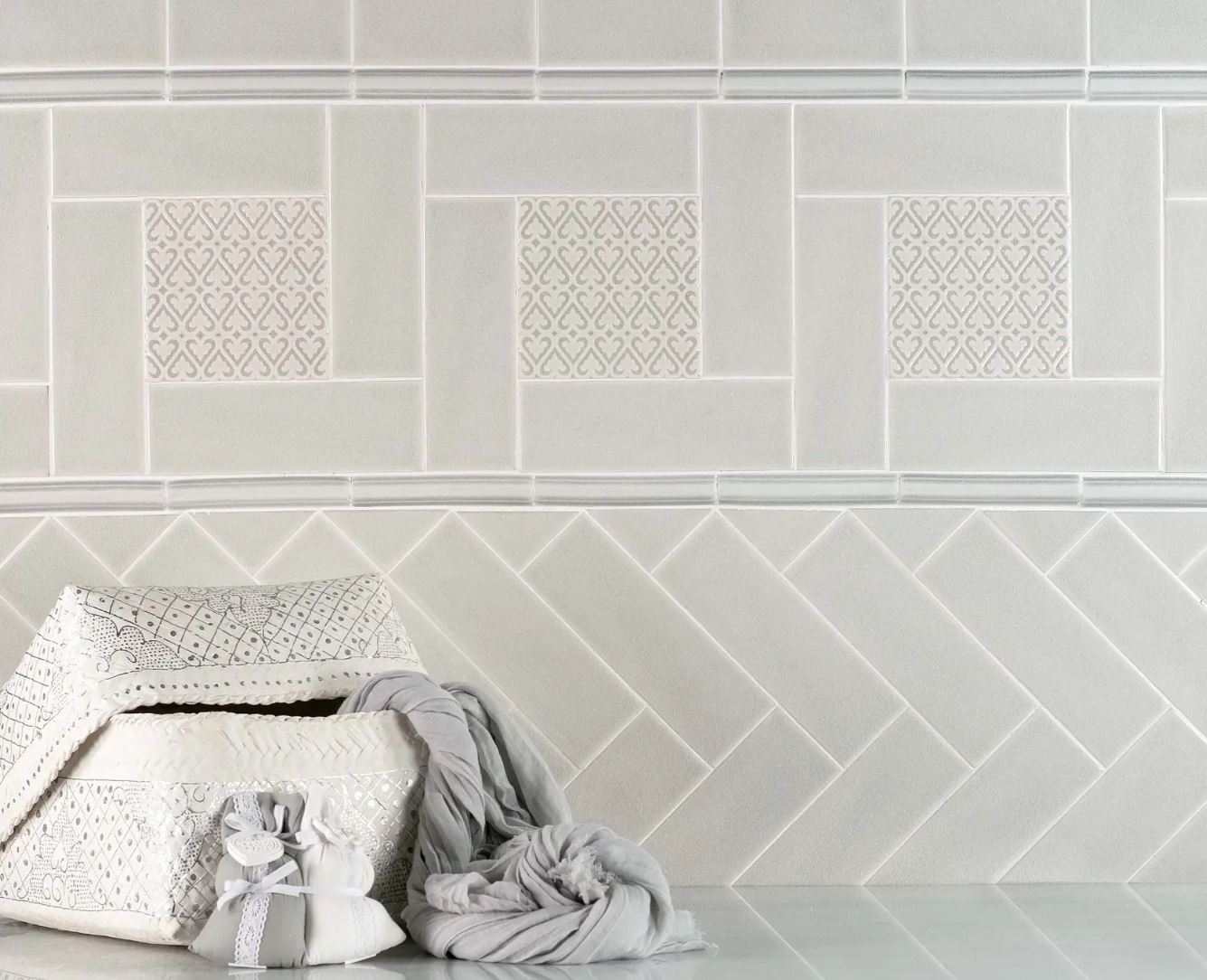 Listelo er en af Ocean-seriens bort-fliser. I serien findes ligeledes klassiske flade fliser, mønstrede relief-fliser, afslutningskanter og sokkelfliser, hvilket indbyder til at skabe et smukt, detaljeret udtryk.