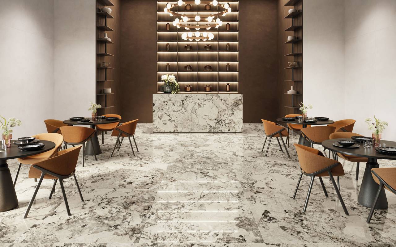 Purity of Marble kan anvendes på både gulve og vægge.