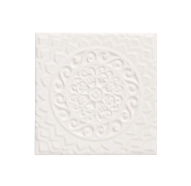 Studio Relieve Mandala Universe er en af seriens mønstrede relief-fliser og den har en varm knækket hvid nuance, der giver et elegant look. Den varme hvide farve med den glossy overflade reflekterer lys smukt, hvilket skaber en følelse af rummelighed og åbenhed i ethvert rum. Dette gør flisen til et ideelt valg for dem, der ønsker at indrette sig minimalistisk og elegant, hvor farven kan fungere som et lærred for boligens andre designelementer.